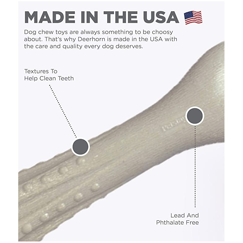 Naturally shed antler and is also lead and phthalate free - that means you can rest easy knowing your dog is chewing on a safer and better bone
