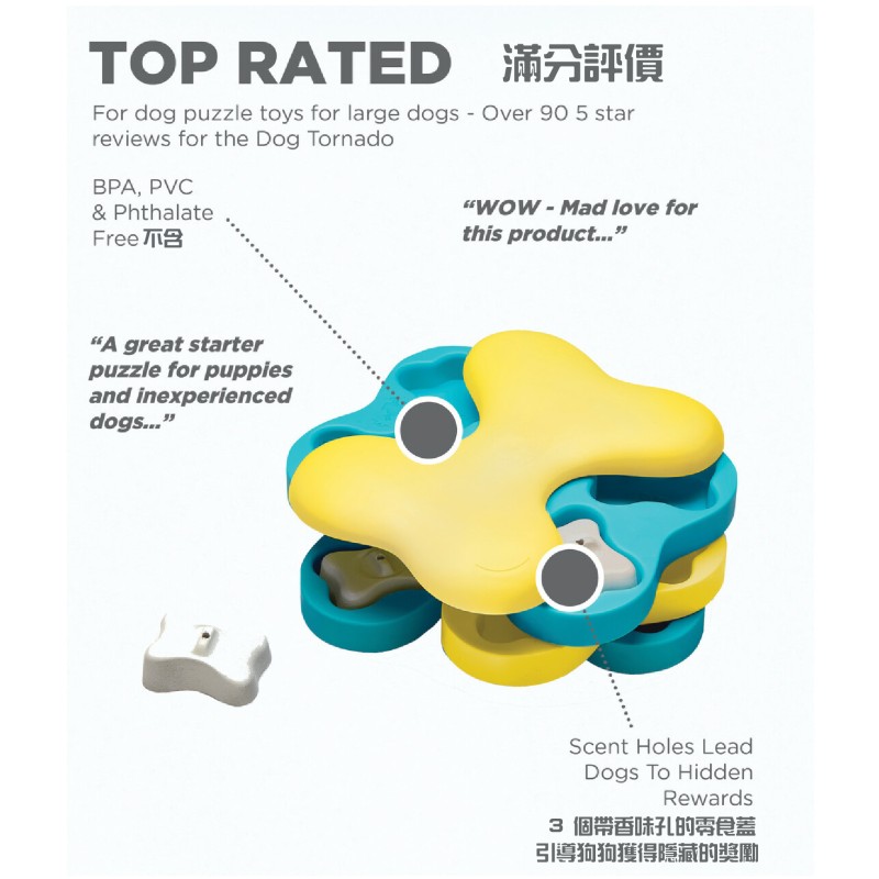 - 也可以用作狗狗的慢食餐具。適用於放置乾或濕食品。也適合視力不好和/或鼻子扁的幼犬及狗狗; 貓貓也適用。