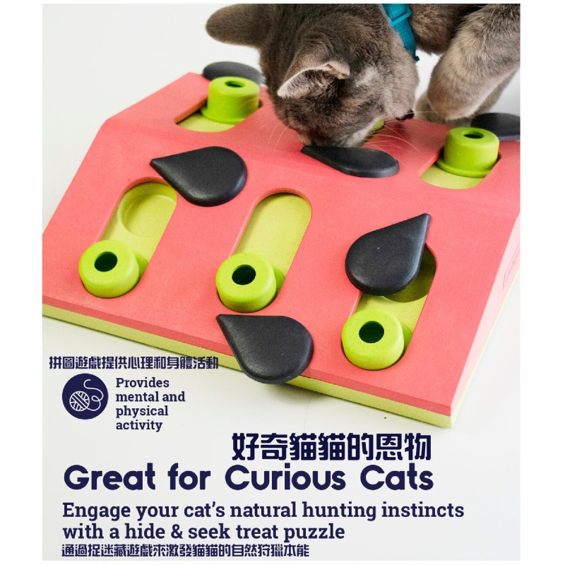 Curious cats will love the challenge of the Melon Madness Puzzle & Play by Nina Ottosson!