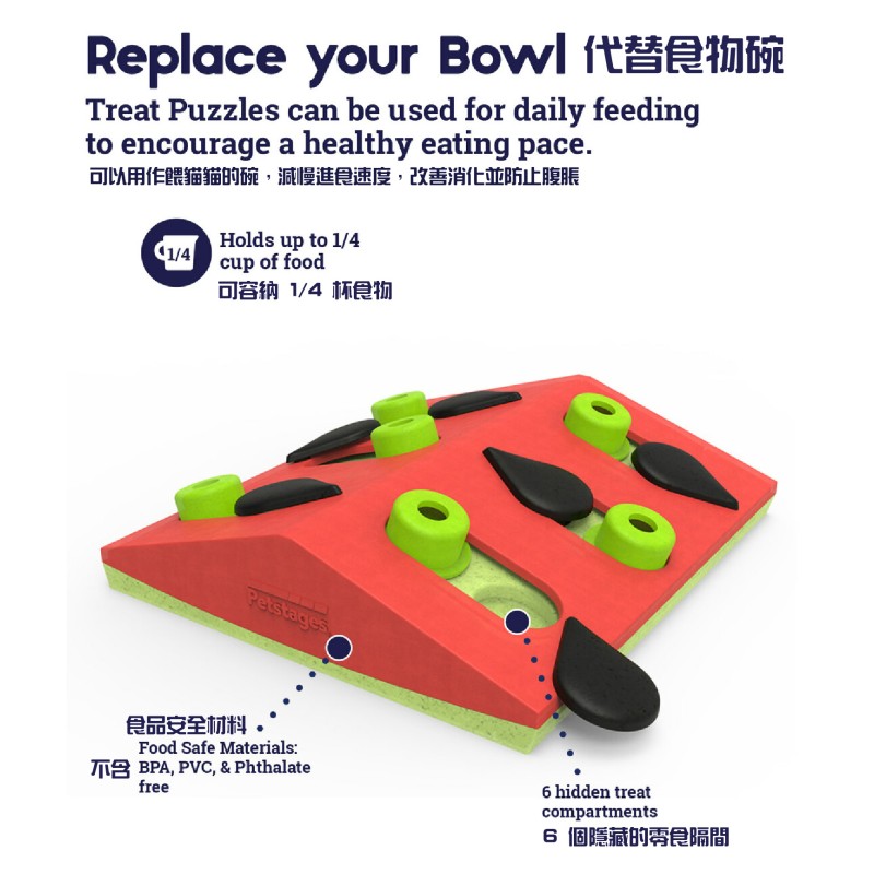 提示:為了鼓勵貓咪的自然狩獵本能,您可以每天在不同的地方放置西瓜拼盤。
